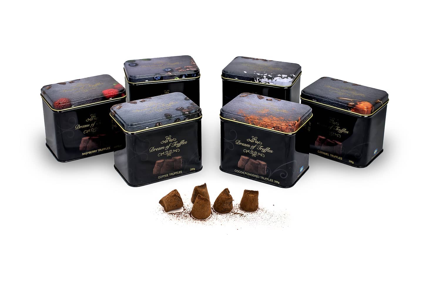En underbar krämig Premium svensk tryffel. Tryffeln är pudrad med kakaopulver och smälter verkligen i munnen. Varje plåtlåda innehåller ca 20-22 st, 200g. Dream of Truffles finns i olika smaker.