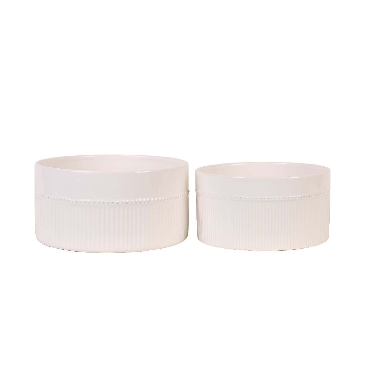Ett set med två stilrena krukor i vit keramik som passar lika bra till blommor och gröna växter som till att användas som dekorativa inslag i inredningen. Med sin klassiska färg och enkla form smälter de lätt in i olika stilar och miljöer. Storleken är Ø22×11 cm, vilket gör dem lätta att placera på bord, hyllor eller fönsterbrädor.