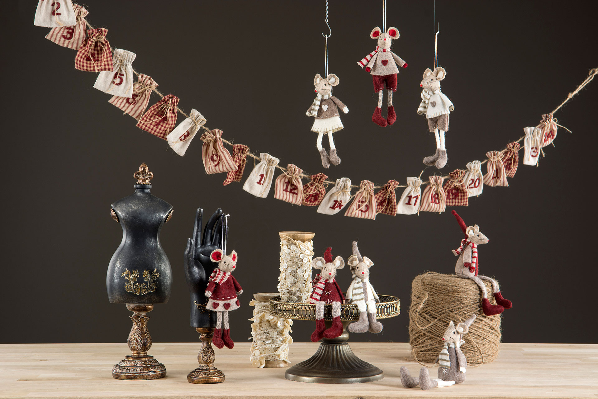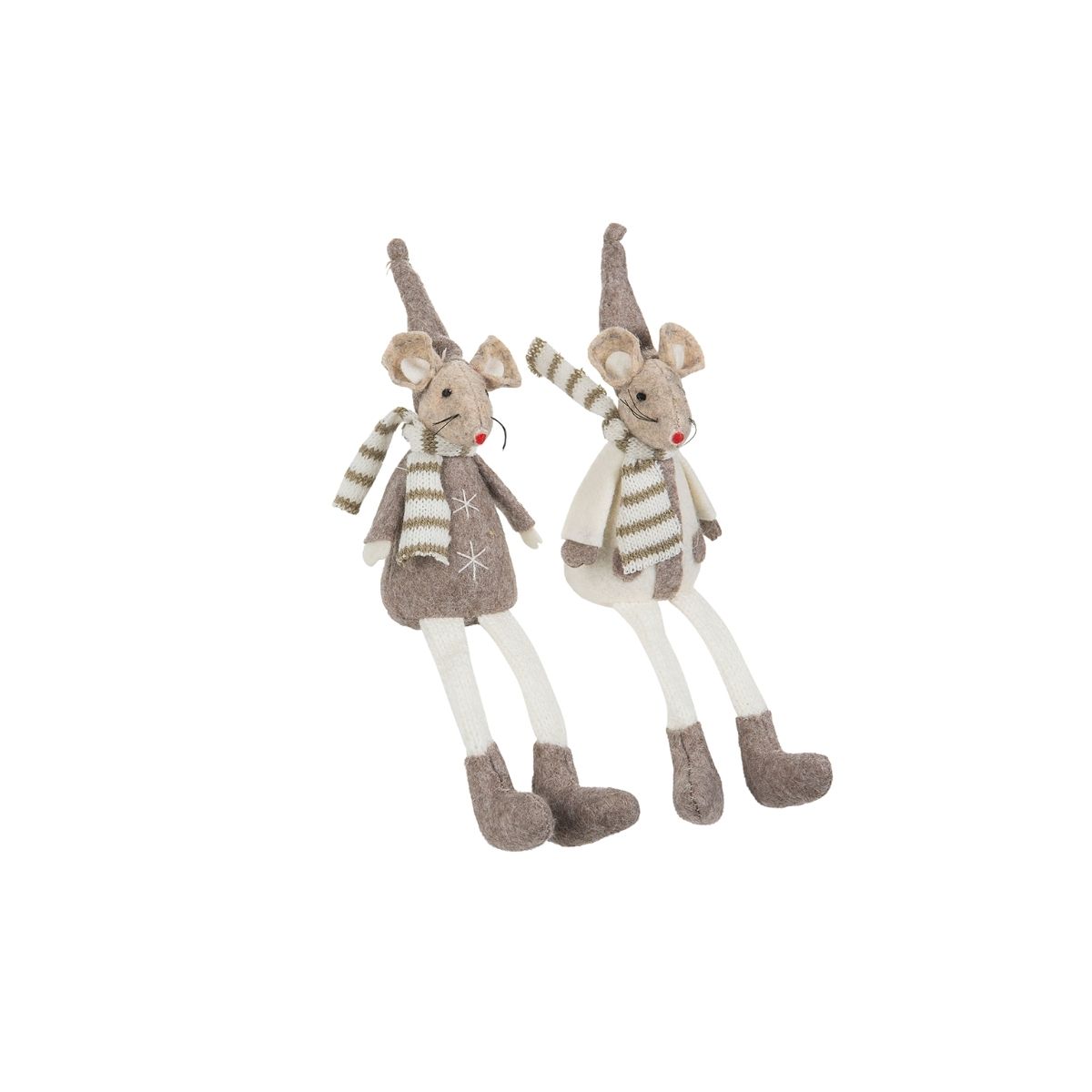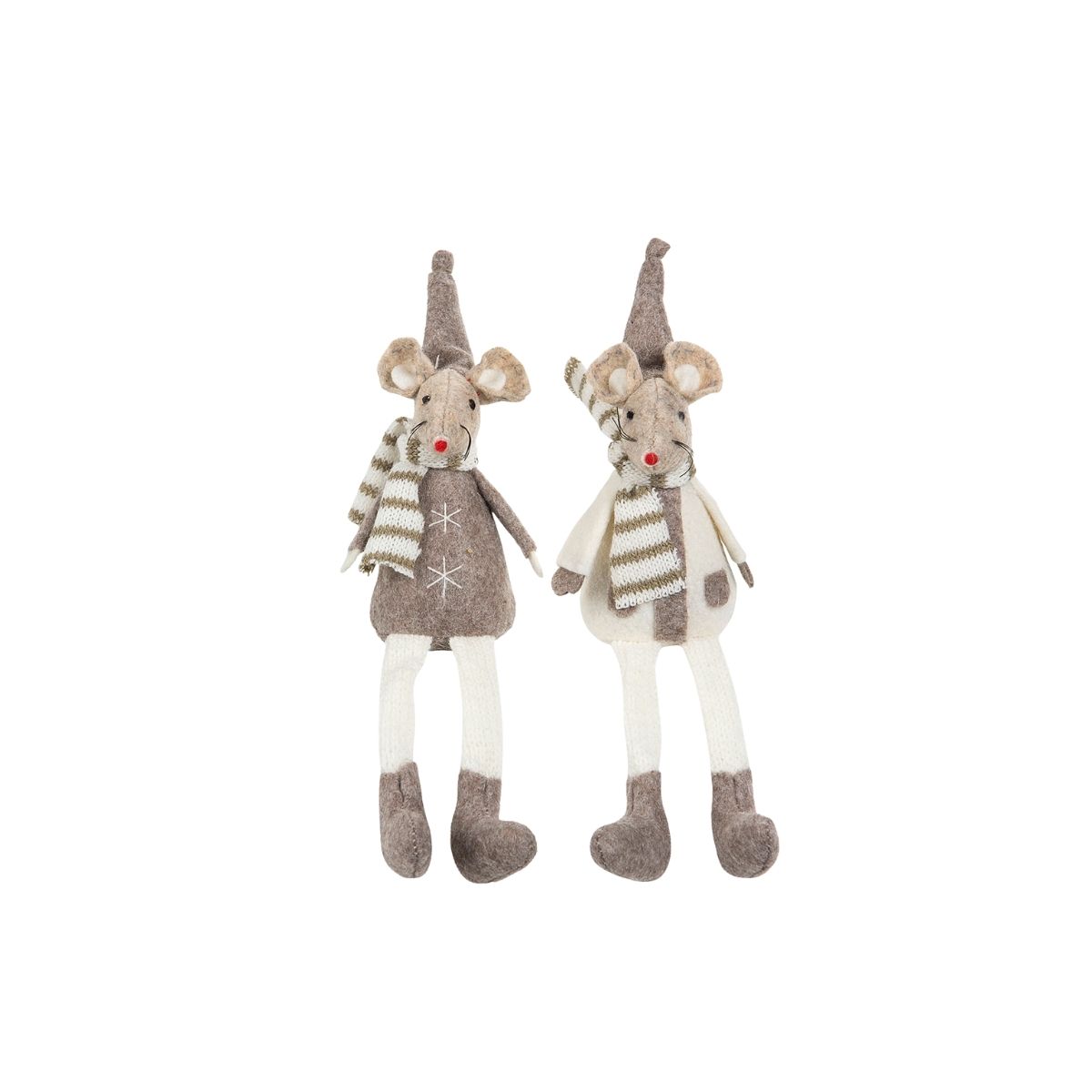 Charmig mus på 20 cm, klädd i tröja, halsduk och mössa. Perfekt att placera på en hylla, bricka eller låda för en lekfull och mysig känsla. Tillverkade i textil. Finns i flera färger. Säljs styckevis.
